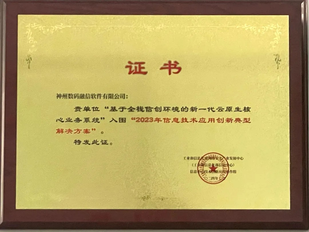 近日,由工业和信息化部网络安全产业发展中心联合天津、浙江、福建、山东等地的信息技术应用创新管理机构举办的“2024信息技术应用创新发展大会”在天津举办。大会聚焦金融、能源、通信等重点行业领域,成功发布系列关键领域典型信创解决方案。神州信息全自研的“基于全栈信创环境的新一代云原生核心业务系统”获评“2023年信息技术应用创新典型解决方案”,获国家级信创认证。