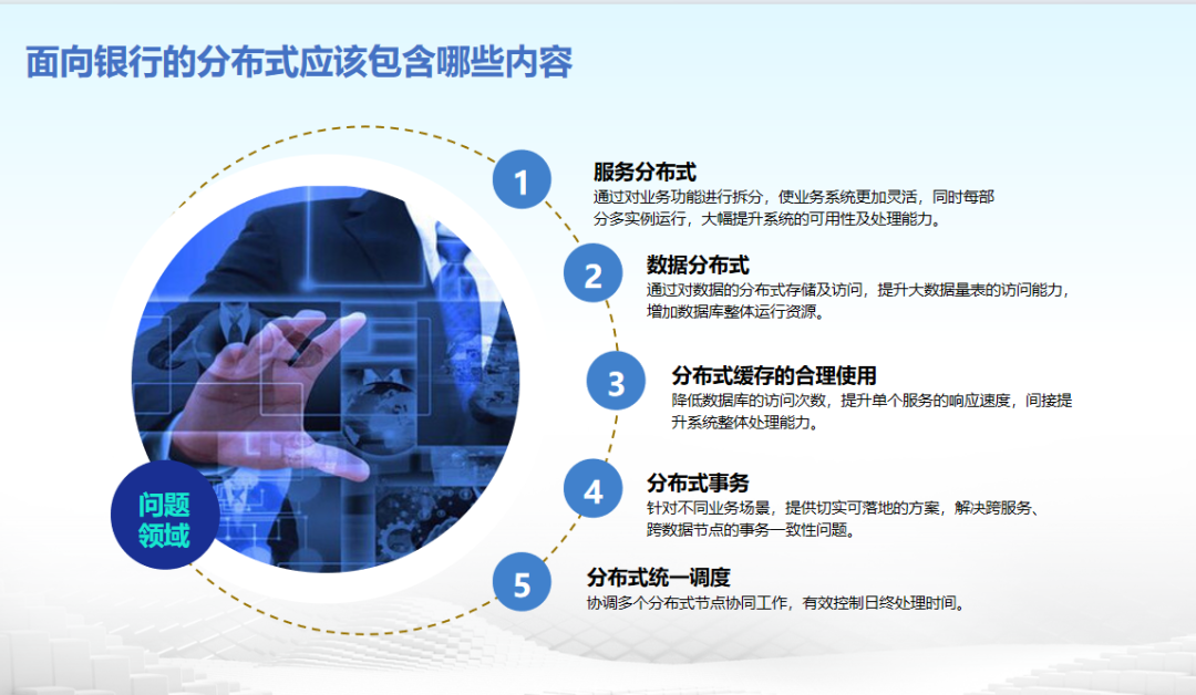 薛春雨介绍到,“一套完整的分布式不仅要在物理上进行多重分割,同时还要在逻辑上保持完整性,以提升银行业务的灵活性和响应速度”。